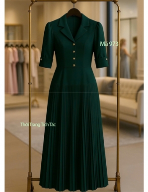 Đầm cổ vest dập ly màu Tím cà - E972
