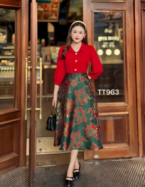 Chất liệu: Áo lụa nhung cao cấp - phối chân váy gấm cao cấp